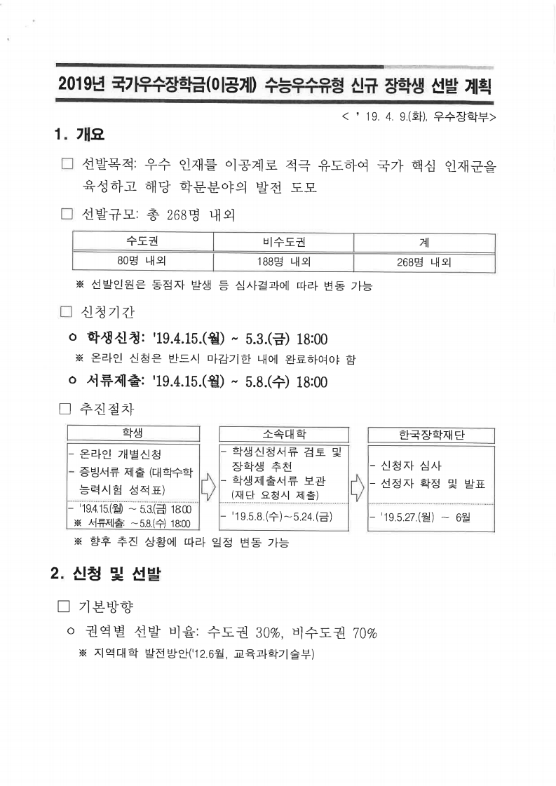 | [장학안내]2019학년도 국가우수장학금(이공계) 수능우수유형 신규 장학생 선발 안내 | |